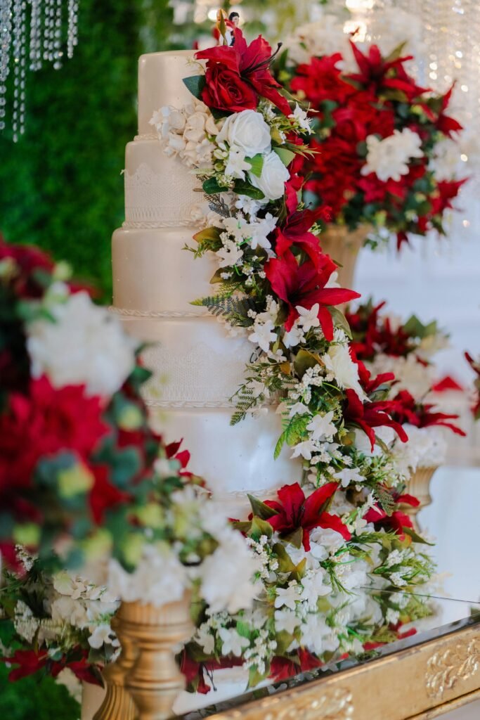 Fruit platters and cake – fresh tropical fruits and a multi-tiered wedding cake to mark the grand finale.